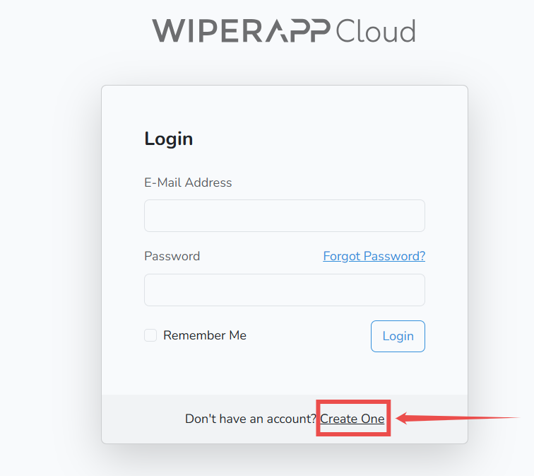 Step 1: Navigate to https://panel.wiperapp.com/login and click on the Create One option.
