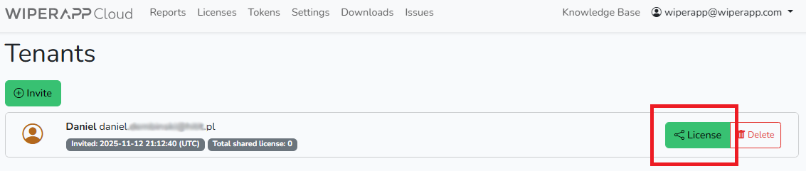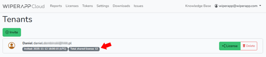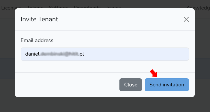Step 5: Enter the email address of the person you want to share licenses with, then click “Send invitation”